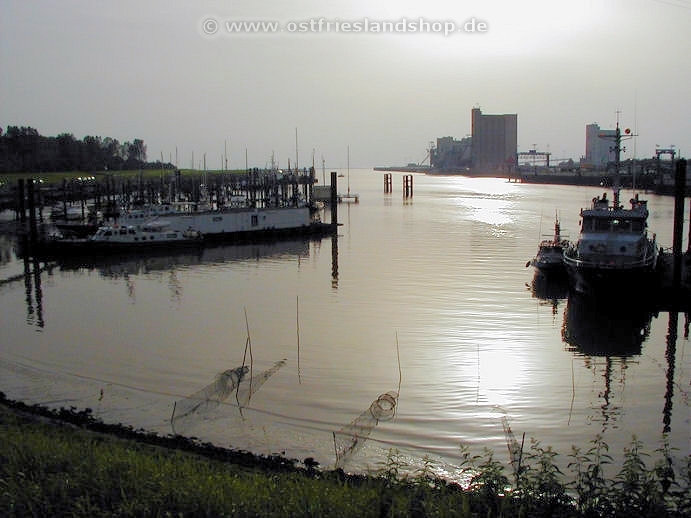 Auf der anderen Seite können wir auf den Aussenhafen und einen Teil der Ems sehen. Hier werden Volkswagen, die im Werk Emden hergestellt werden, per Schiff verladen und nach Übersee transportiert. Aber hier befindet sich auch der Anleger für Reisende nach Borkum, der Insel die 50km weit im Meer liegt, also ein echtes Seeklima hat was viele Leute mit Atmungsproblemen zu schätzen wissen