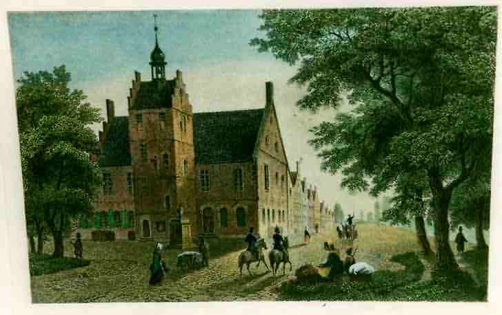 Das Rathaus von Norden. Hochwertiger Faksimiledruck nach Stahlstich (vergrößert), Rohbock, Jahr ca. 1840, 25x35 cm, koloriert