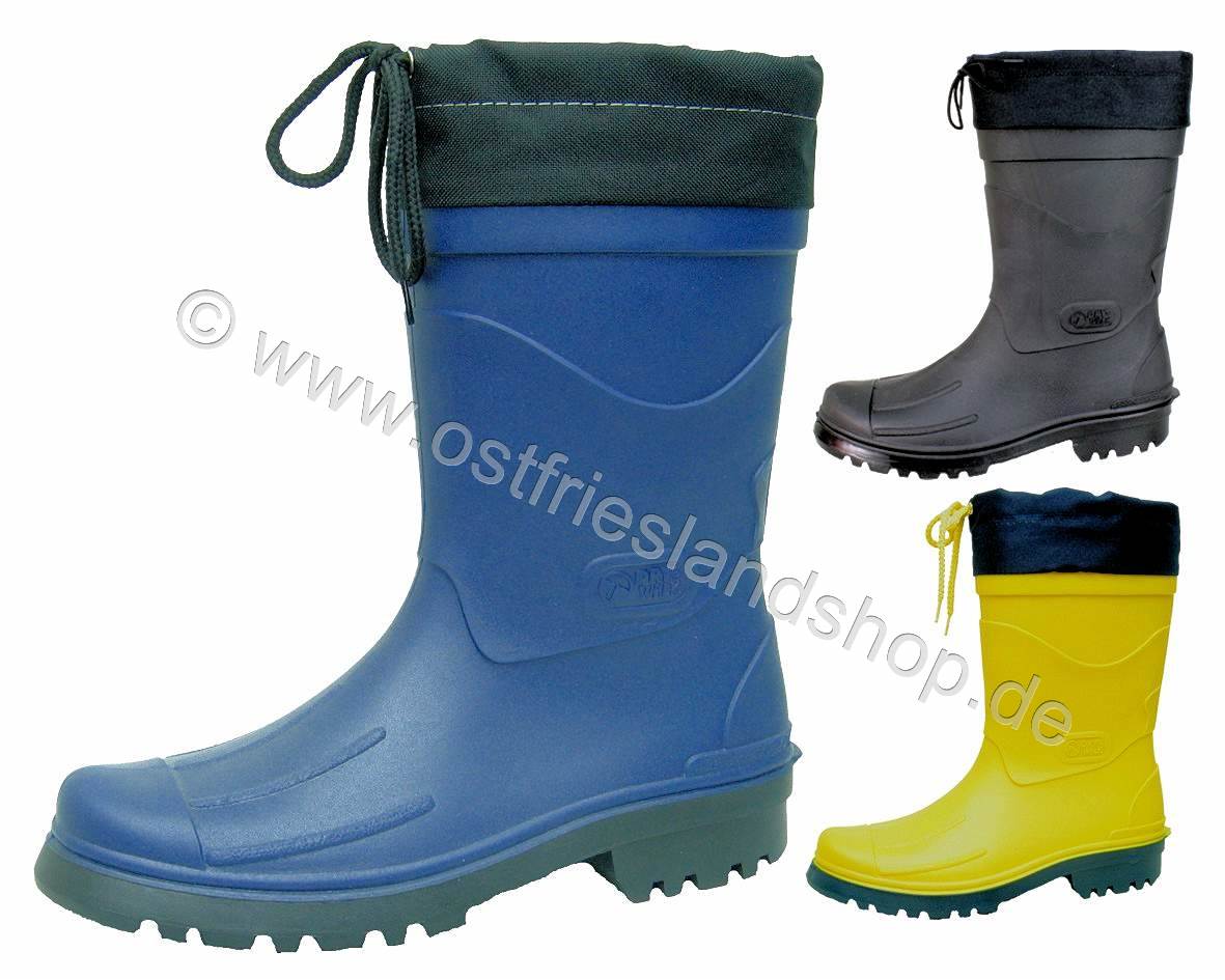 Freizeit PVC-Stiefel (Gummistiefel) für Herren und Jungen mit farblich abgestimmter Nylonstulpe und Sohle in sehr guter strapazierfähiger Verarbeitung. Ausziehhilfe an der Hacke und Knöchelschutz. In 8 verschiedenen Größen und in den Farben gelb matt mit blau, schwarz matt mit schwarz und dunkelblau matt mit schwarz lieferbar. Ein Stiefel der mit Ihnen durch dick und dünn geht und garantiert wasserdicht ist bis an die Stulpe. Schön profilierte Sohle für einen rutschfesten Halt auch auf schwierigen Böden