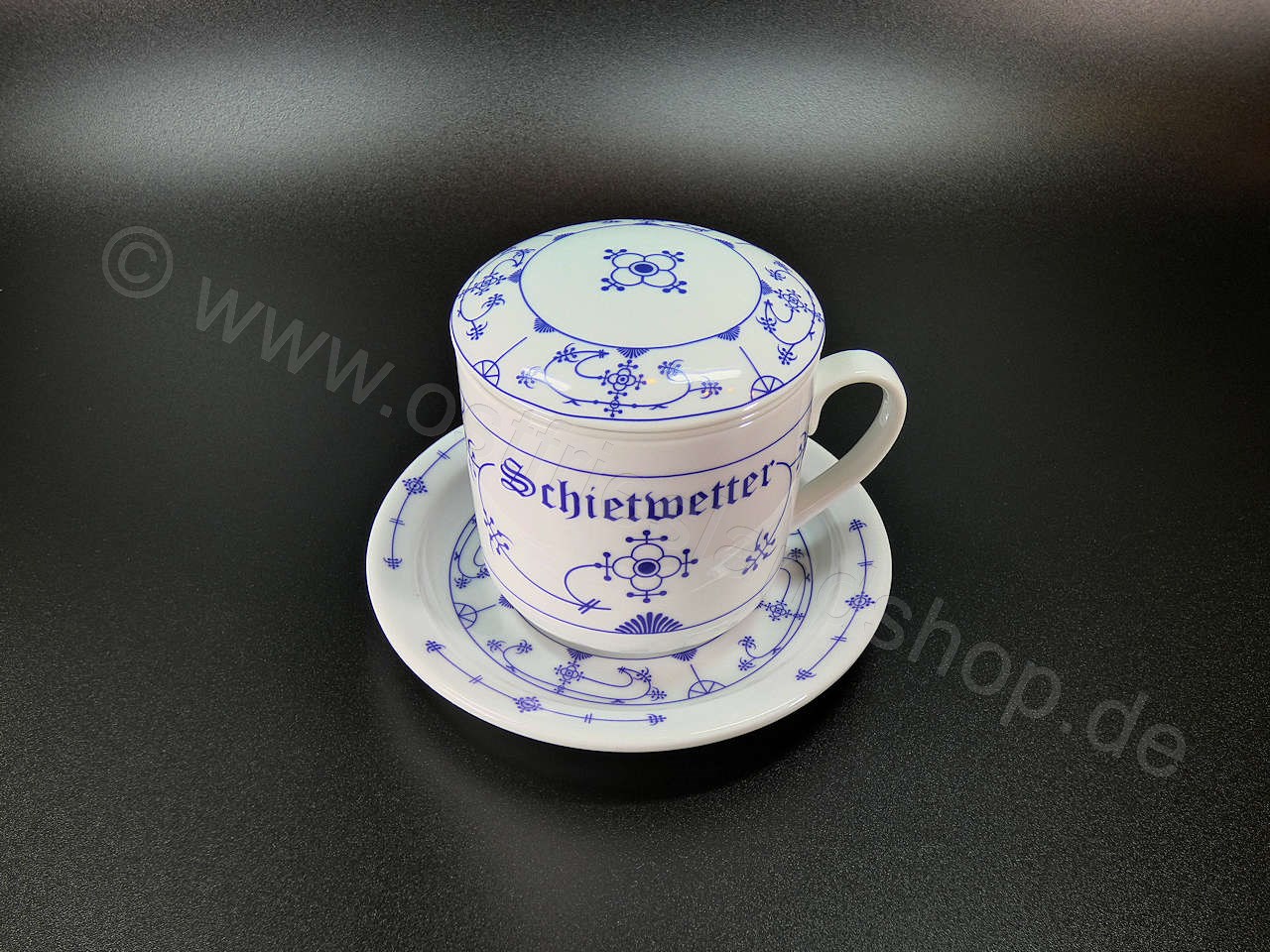 Wir bieten Ihnen hier die vierteilige Kräutertasse mit Untertasse, Deckel und Porzellansieb mit einer Höhe von ca. 11 cm an. Inhalt ca. 300ml. Egal wie das Wetter auch ist, durch diese wunderschöne Tasse und den lustigen Spruch bleibt man trotzdem gelassen und gut gelaunt. Durch das Porzellansieb braucht man auch keine Einmalfilter benutzen und vermeidet dadurch unnötigen Abfall.