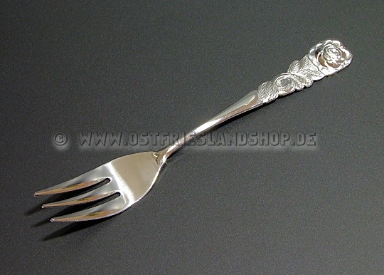 Kuchengabel Set im Dekor Rose. Schöne Gabel mit einem Rosendekor in guter Verarbeitung aus rostfreien Edelstahl. Preiswerte Ausführung geeignet für den täglichen Gebrauch ohne dabei auf eine hübsche Optik zu verzichten. Länge ca. 13,5 cm. Geliefert wird im Set mit einem Inhalt von 6 Stück. Spülmaschinengeignet.