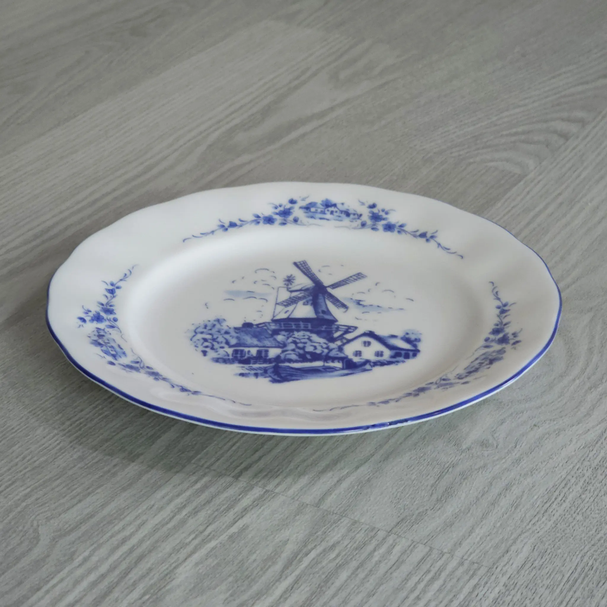 Ergänzen Sie Ihre Kaffeetafel um ein Stück echte friesische Tradition. Dieser wunderschöne Kuchenteller aus hochwertigem Porzellan besticht durch sein detailreiches blaues Dekor, das ein idyllisches Dorfleben mit einer Windmühle, Nebengebäuden und einem Kahn auf einem Kanal darstellt. An der Kante ist ein feines florales Muster mit fein ausgearbeiteten Blumen und einem typischen Friesenhaus zu sehen.