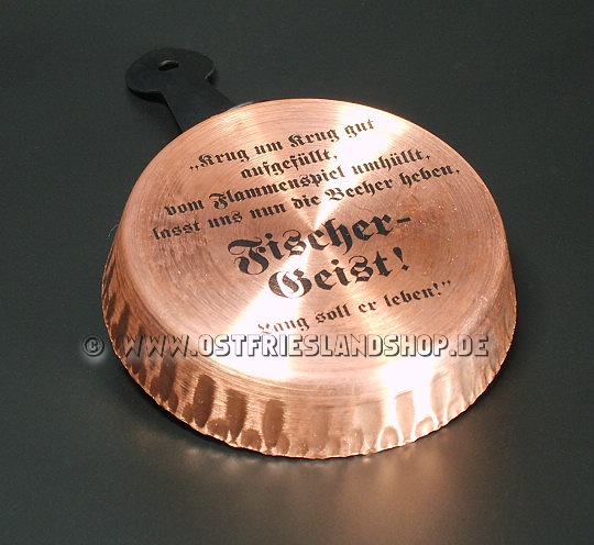 Das berühmte Fischergeistpfännchen mit dem der brennende Fischergeist im Glas gelöscht wird (so wie er traditionell getrunken wird). Die ideale Ergänzung zum Fischergeist. Mit diesem Pfännchen wird der Genuss des Fischergeist erst vollkommen.