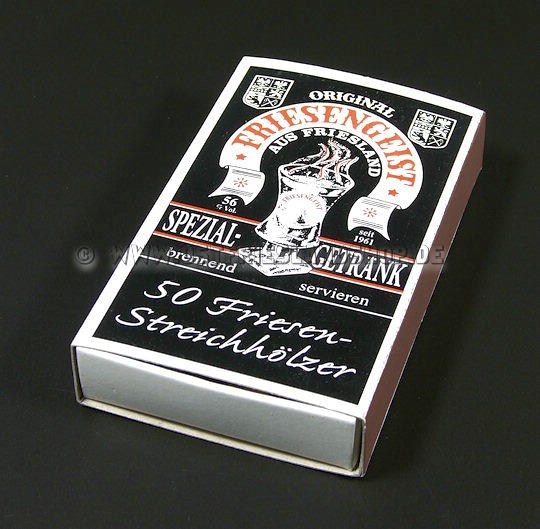 Die berühmten Friesengeist Riesenstreichhölzer / Streichhölzer / Zündhölzer mit dem der Friesengeist im Glas angezündet wird (so wie er traditionell getrunken wird). Die ideale Ergänzung zum Friesengeist. Mit diesen Streichhölzern wird der Genuss des Friesengeist erst vollkommen. Lieferung 50 Stück Riesenstreichhölzer.