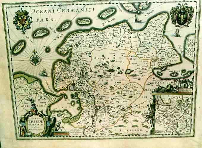 Hochwertiger Faksimiledruck nach Kupferstich, Blaeuw nach Ubbo Emmius, Jahr ca. 1640, 38x49x cm, koloriert