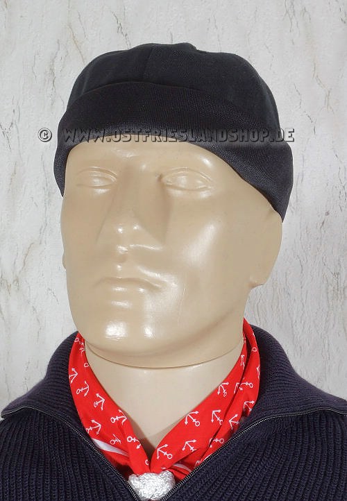 Segler-Cap (Seglercap) mit elastischem Rollband und durch einen Klettverschluss in der Größe verstellbar. Aus 100 % Baumwolle. Erhältlich in zwei Farben (marine oder schwarz). Praktische Kopfbedeckung die durch die Grössenverstellung variabel anpassbar ist und herrlich angenehm den Kopf warm hält