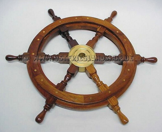 Ein sehr schönes Steuerrad aus Holz in einer qualitativ hochwertigen Verabeitung. Der Mittelpunkt des Steuerrades besteht aus hochglänzenden Messing. Um die authentische Optik zu optimieren wurden auch Messingnieten verwendet um einzelne Holzsegmente auf dem Rad zu befestigen. Durch diese liebevolle Detailverarbeitung wirkt dieses Steuerrad so als wenn man es eben von einem alten Segelschiff abmontiert hat. Ein herrlicher Dekoartikel z.B. zum aufhängen an die Wand. Lieferbar in zwei verschiedenen Grössen (45 cm und 75 cm Durchmesser)