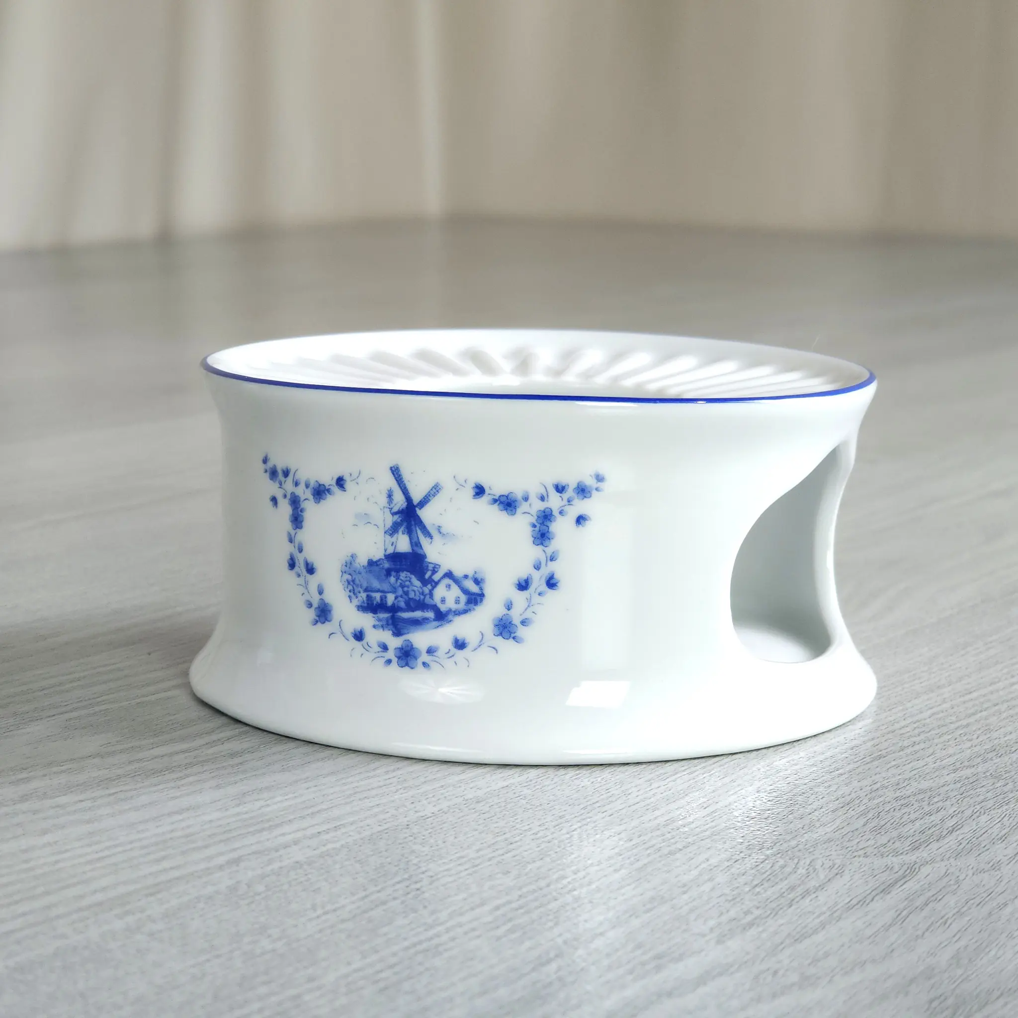 Ergänzen Sie Ihr Service um ein Stück echte friesische Tradition. Dieses wunderschöne Porzellan-Teestövchen besticht durch sein detailreiches blaues Dekor, das ein idyllisches Dorfleben mit Windmühle darstellt. Der Rand ist mit einem feinen floralen Muster veredelt.